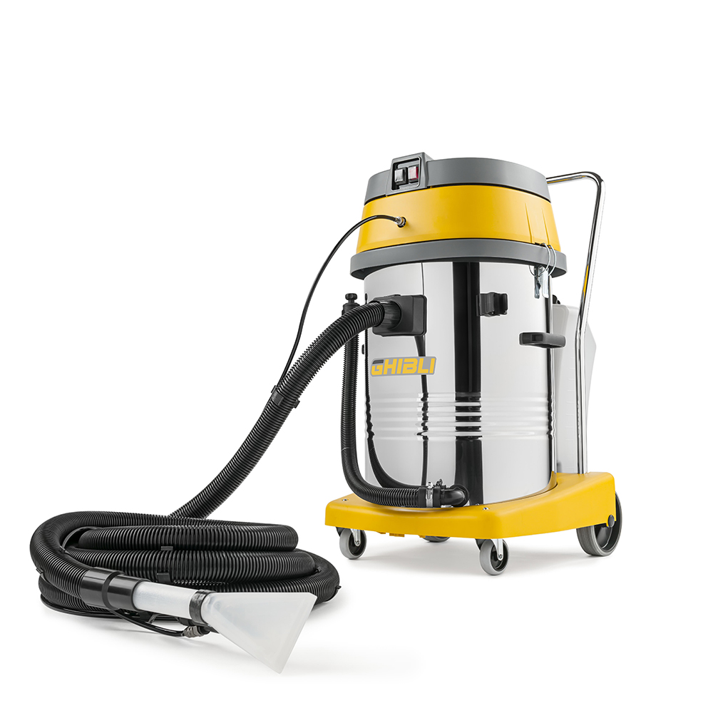 Nettoyeur à injection-extraction tracté, doté de 2 moteurs. Le réservoir est en